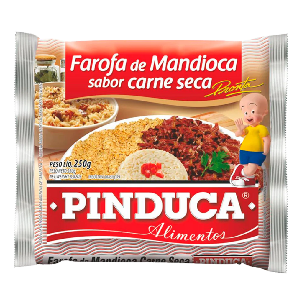 Farine de manioc brésilienne préparée avec de la carne seca (viande séchée), légèrement toastée pour un goût riche et savoureux. Parfaite pour accompagner viandes, grillades ou plats typiques brésiliens.