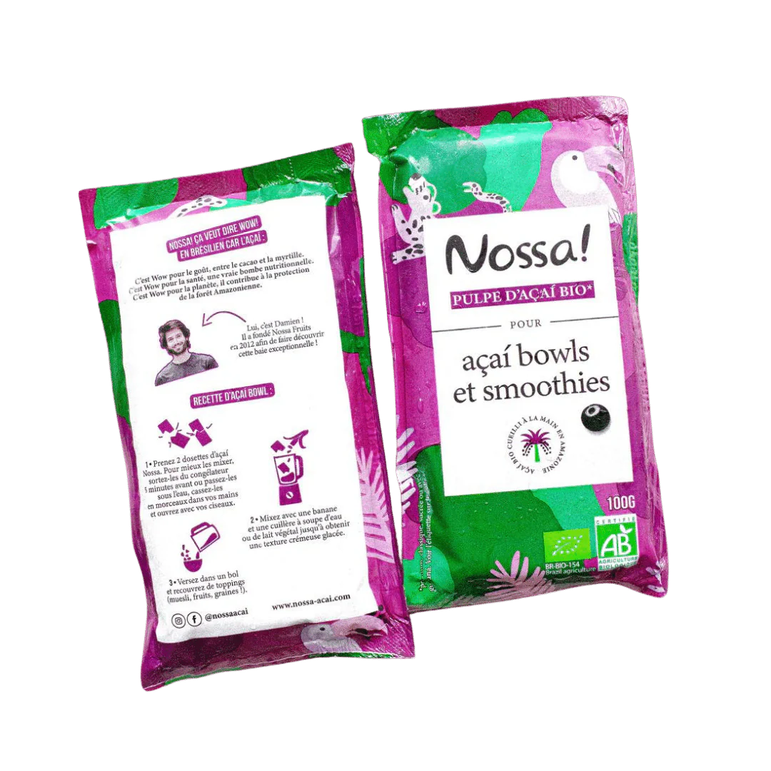 Une pulpe 100 % biologique d’açaí, sans sucre ajouté ni conservateurs, riche en antioxydants, parfaite pour préparer des açaí bowls, smoothies, glaces ou desserts rafraîchissants au goût authentique et énergisant de l’Amazonie.